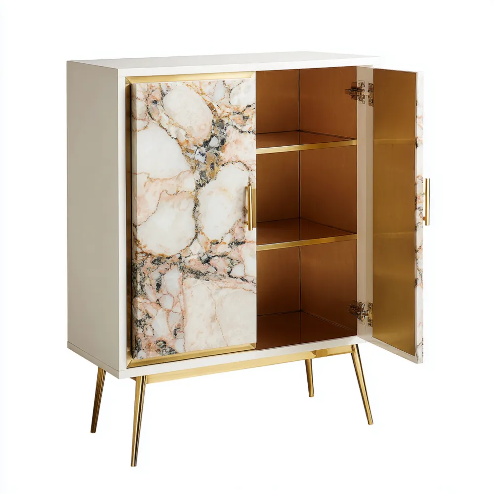Mobile contenitore in legno 90x40x100 cm – Oro/Marmo – Design Moderno