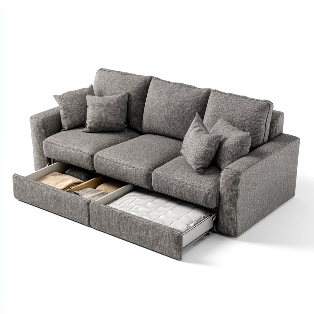 Funzionalità e VantaggiCapiente contenitore sotto il sedile per riporre coperte, cuscini, o qualsiasi altro oggetto, il che aiuta a mantenere il salotto in ordine.
