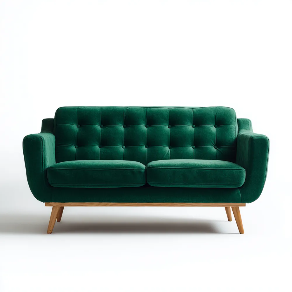 Materiale e lavorazioneRivestito in morbido velluto verde di alta qualità, il divano offre una seduta confortevole e resistente. La struttura è solida e durevole, ideale per un uso a lungo termine.